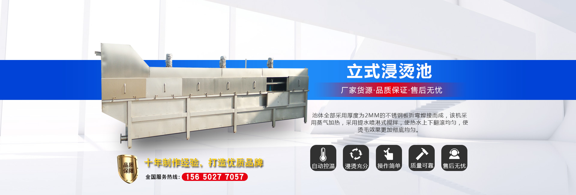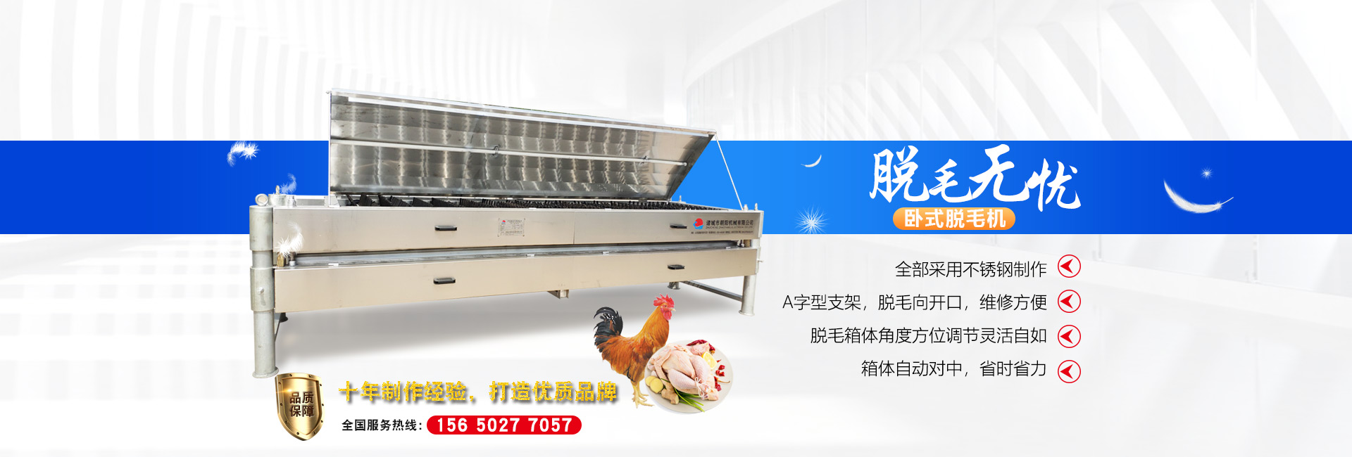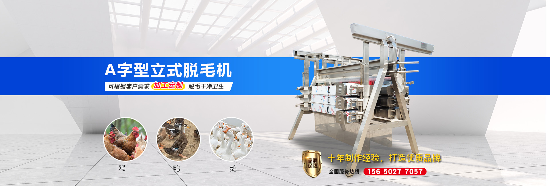 公司長期與國內(nèi)外屠宰加工企業(yè)合作,走引進——消化——創(chuàng)新和自主研發(fā)相結(jié)合的道路,在國內(nèi)外同類產(chǎn)品的基礎(chǔ)上,不斷更新和改造。公司主要設(shè)備有:A字型立式脫毛機、臥式脫毛機、強力噴淋機、松毛機、浸燙池、螺旋預(yù)冷機、禽籠清洗機、電暈機、兔扯皮機、兔割前爪/后爪機、剝胗機、自動洗鉤機、螺旋燙爪機、雞爪脫皮機、分割輸送帶等屠宰用設(shè)備。其中,公司獨力發(fā)明生產(chǎn)設(shè)計的“電動調(diào)節(jié)脫毛機”及“自動控水控溫浸燙池”順利通過知識產(chǎn)權(quán)局的實質(zhì)性審查。公司所生產(chǎn)的設(shè)備 可與國外同類產(chǎn)品配套使用,設(shè)備遠銷阿爾及利亞、澳大利亞等中東、非州等并建立了長期穩(wěn)定的合作關(guān)系。